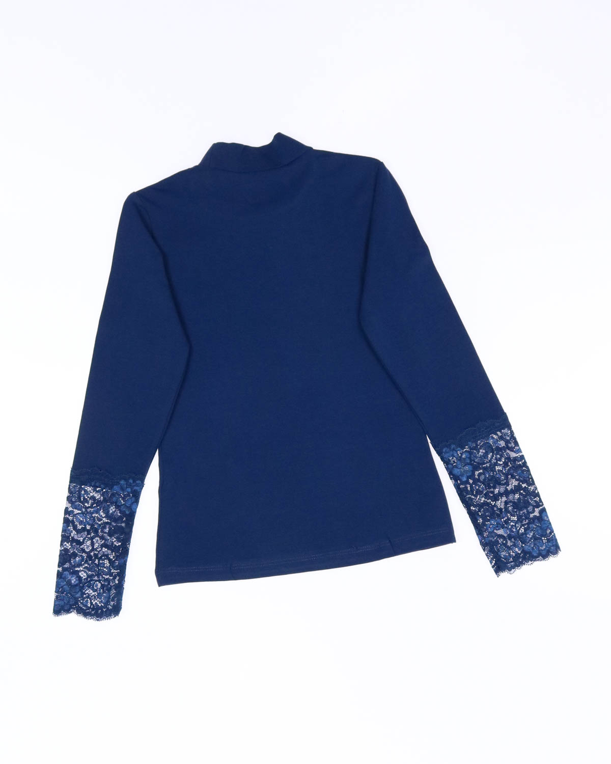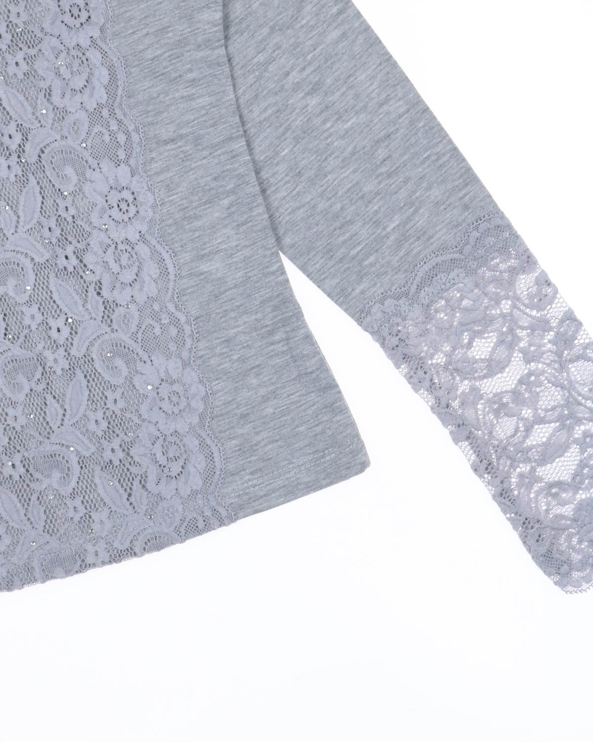 Трикотажная блузка для школы выполнена из хлопка с добавлением эластана. Рукава и перед блузки дополнен красивым гипюром.