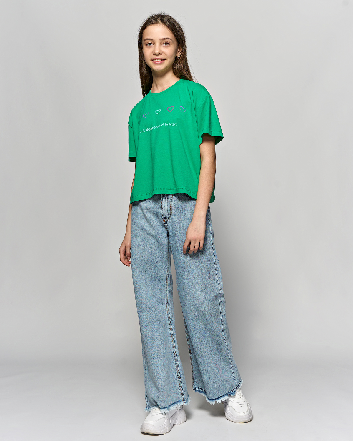 Футболка Cegisa для девочки оптом выполнена из высококачественного трикотажа. Фасон футболки прямой, укороченный, на груди стильный принт.