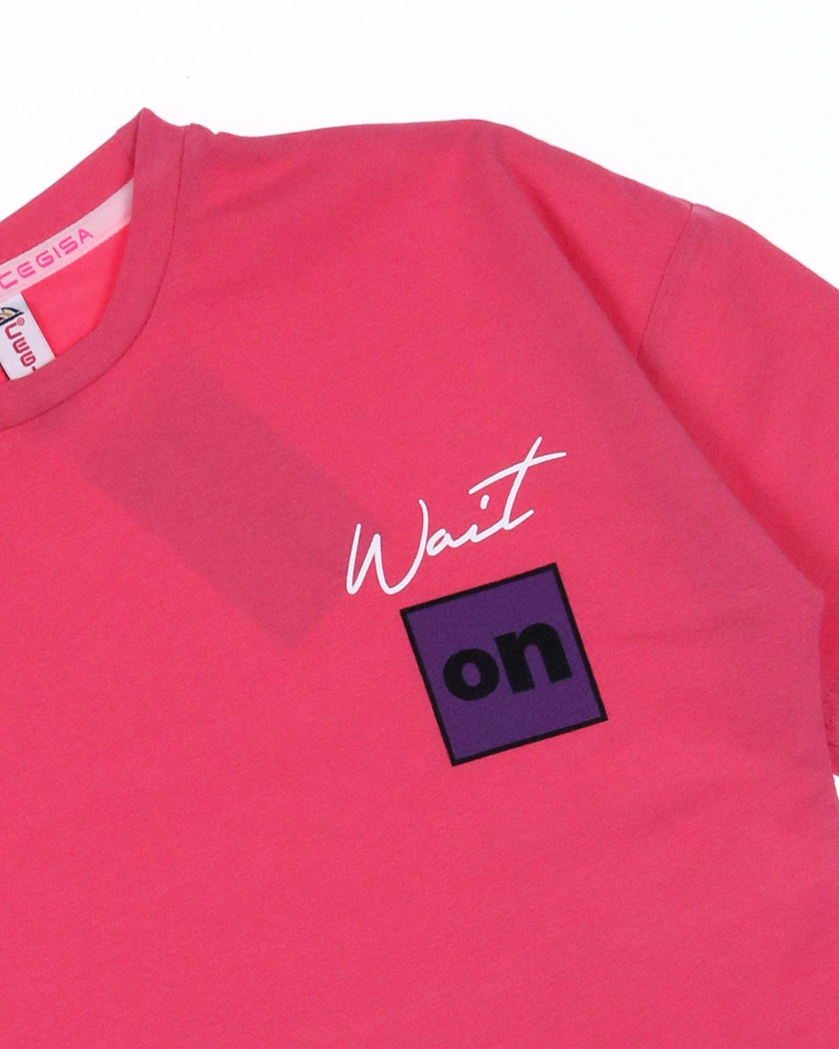 Летний костюм CEGISA для девочки из эластичного трикотажа кулирка. Футболка прямого кроя, со спущенной линией плеча и велосипедки.