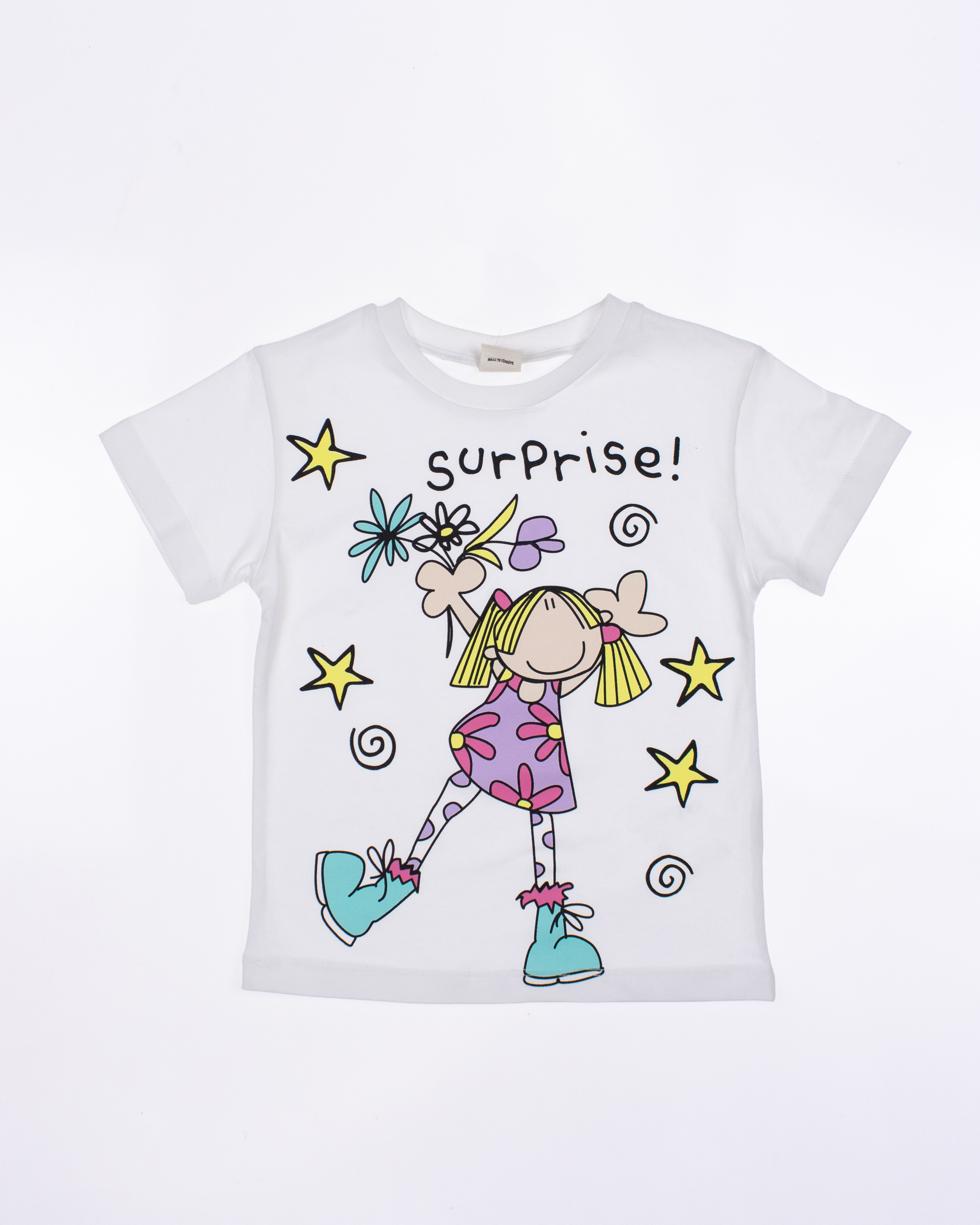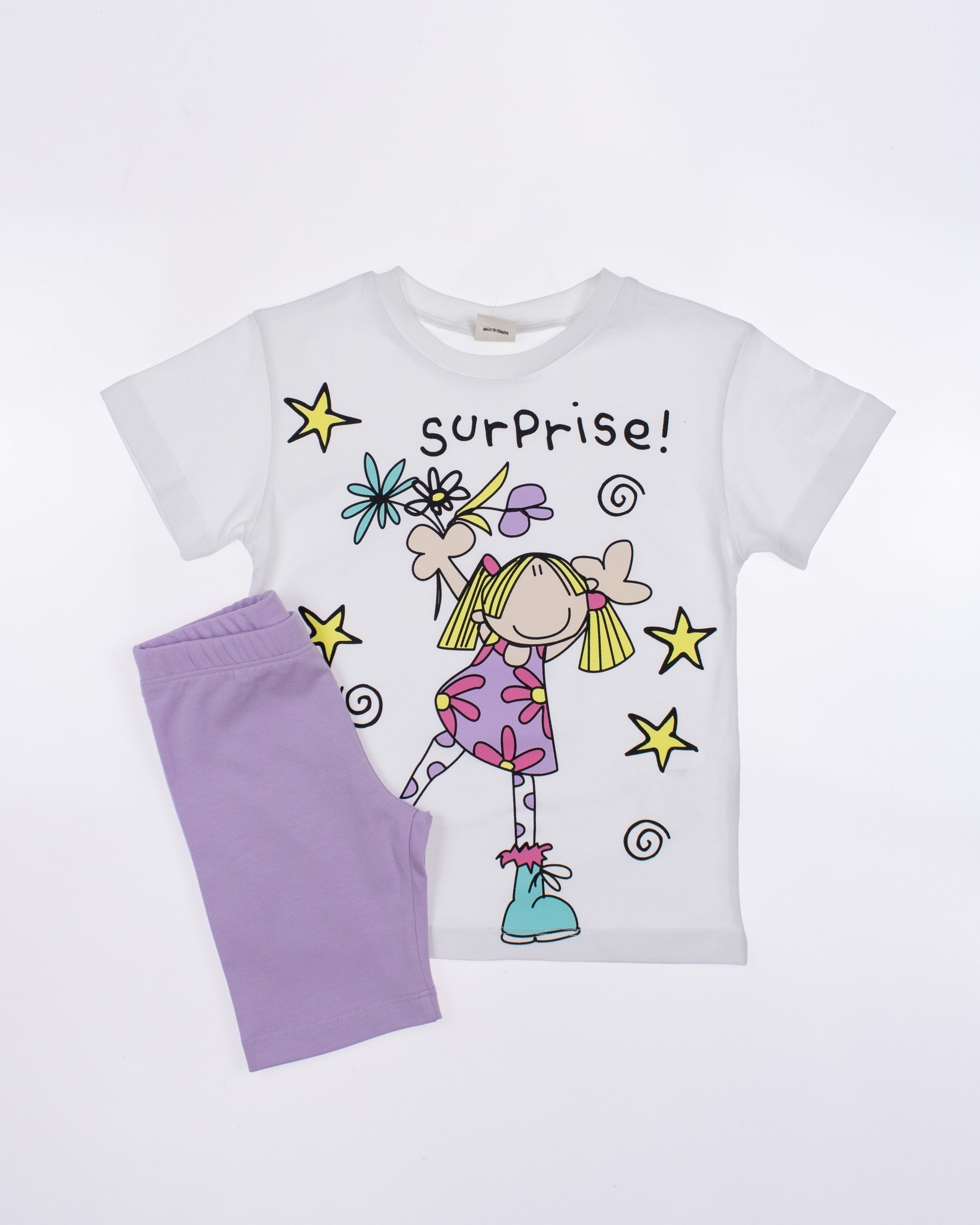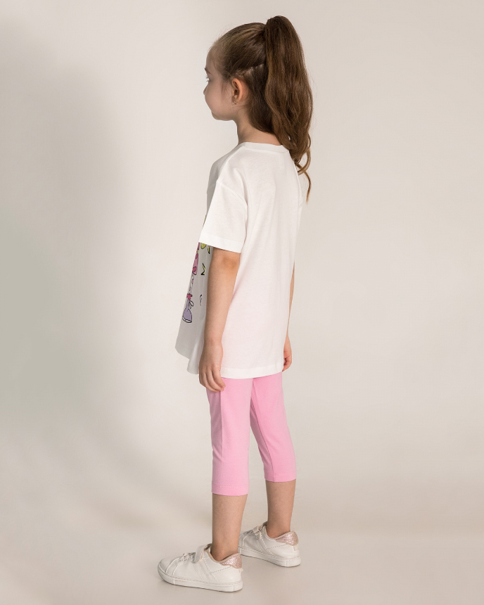 Детский костюм торговой марки DMB - это отличный выбор для маленькой модницы! Произведенный в Турции из высококачественного трикотажа кулирка, этот костюм обеспечивает комфорт и удобство на целый день. Свободный крой и разрезы по бокам делают эту футболку стильной и современной.  А принт на передней части футболки придает ей яркость и оригинальность. Этот костюм подойдет как для повседневной носки, так и для активного отдыха на свежем воздухе. А оптовая цена делает его отличным выбором для магазинов и интернет-магазинов детской одежды. Порадуйте своих малышей качественной и стильной одеждой от DMB !