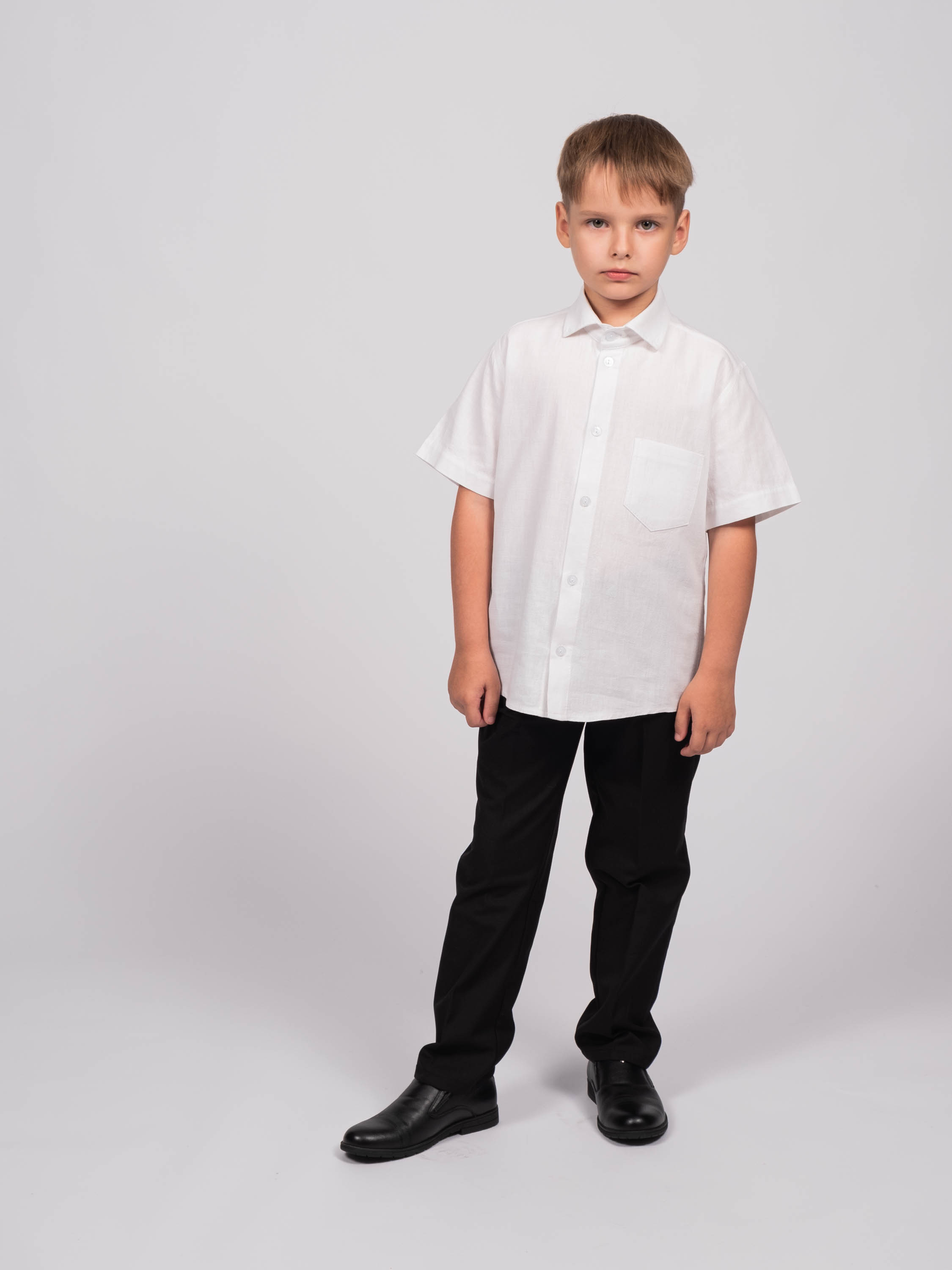 Детская однотонная рубашка для мальчика оптом. Рубашка изготавлена  из хлопка высокого качества. Модель застегивается на пуговицы.