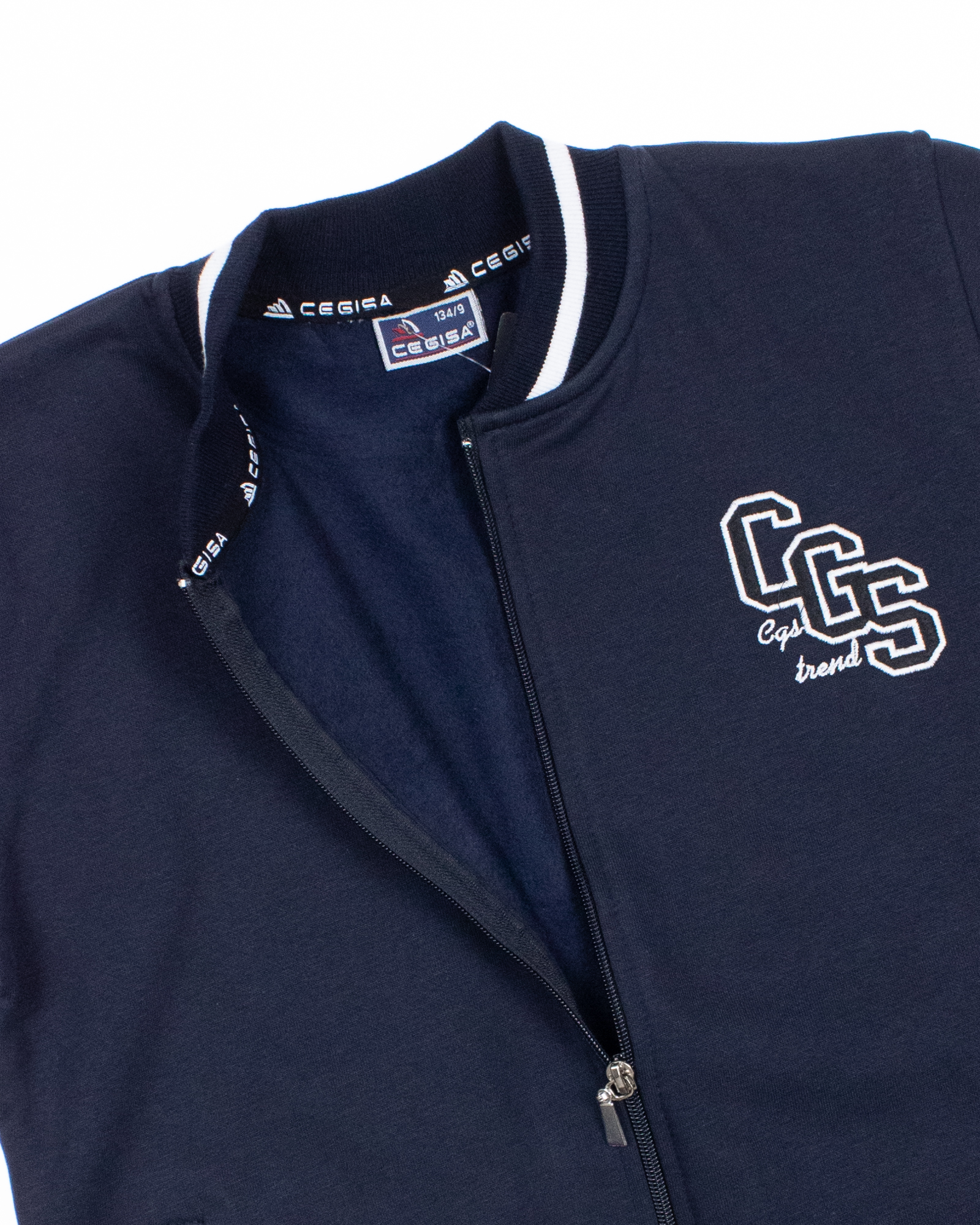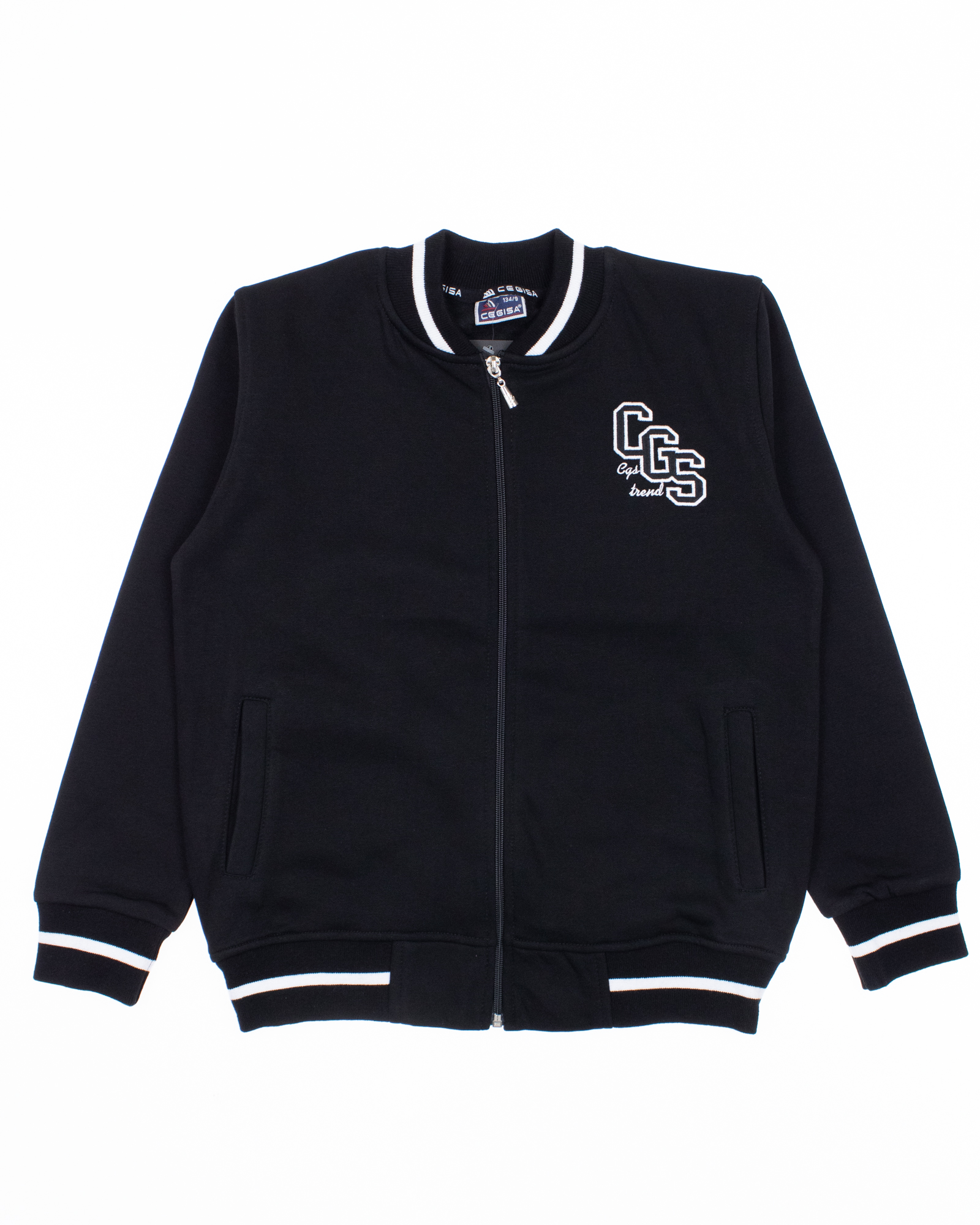Трикотажный бомбер Cegisa для мальчика оптом. Выполнен из смесовой ткани, в составе которой натуральный хлопок с добавлением полиэстера, трикотаж плотный с небольшим начесом. Воротник стойка. Низ изделия и рукава на трикотажном манжете. Вместительные карманы и разъемная застежка - молния. Хорошо сохраняет цвет и форму при длительной носке и после многократных стирок. Прекрасно будет смотреться как школьная форма.