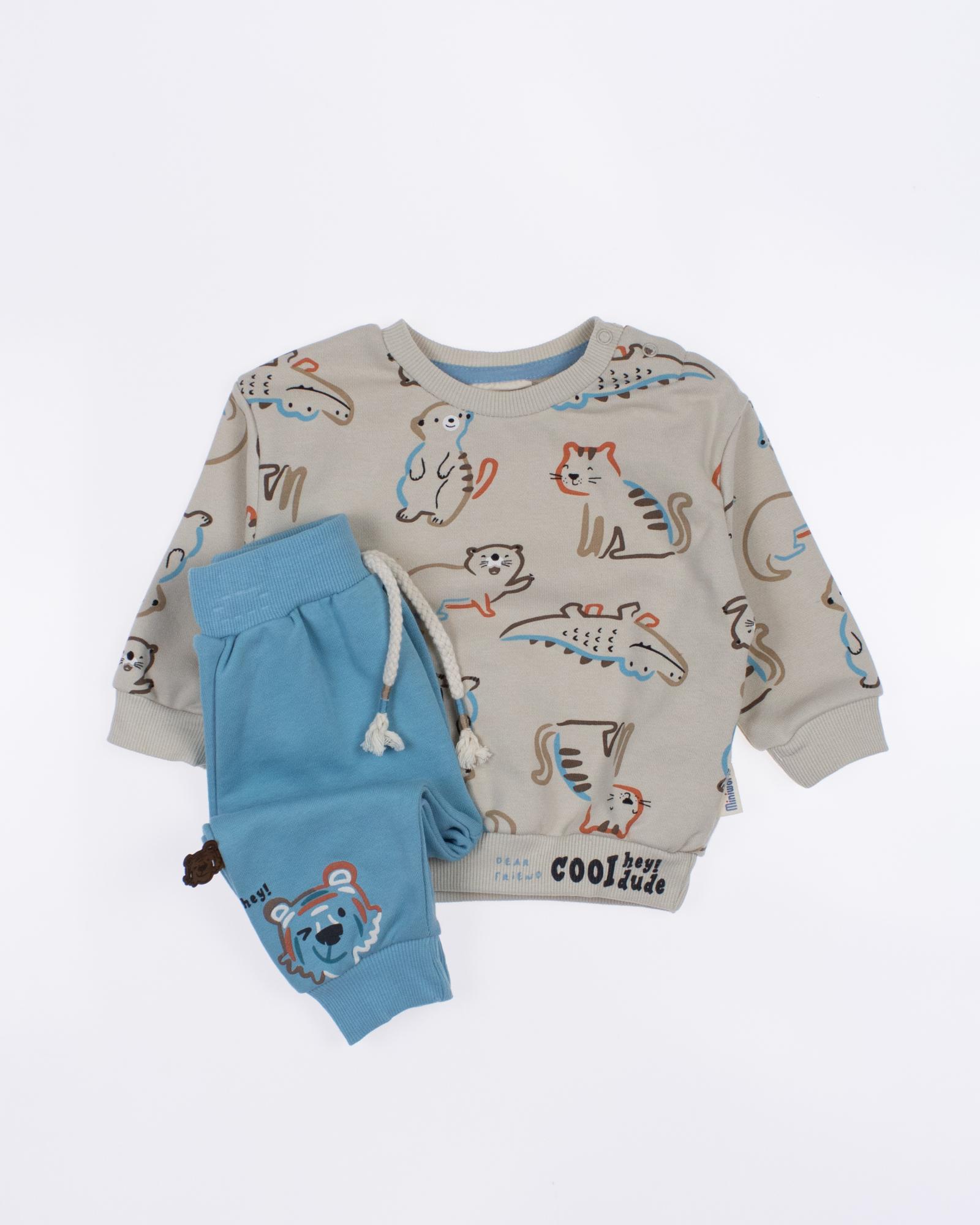 Мы предлагаем оптовые продажи детской одежды производства Турция. Хлопковый костюм MINIWORLD выполнен из 100% хлопка, что гарантирует комфорт и безопасность для самых маленьких детей. Свитшот имеет удобную застежку-кнопки на плече, что облегчит процесс надевания и снятия одежды. Штанишки с мягкими манжетами на эластичном поясе идеально подходят для ношения с подгузником, обеспечивая свободу движений и комфорт. Детский милый принт на костюме поможет развить фантазию и воображение ребенка, делая его образ ярким и запоминающимся. Костюм MINIWORLD - отличный выбор для маленьких модников и их заботливых родителей. Не упустите возможность приобрести этот уникальный товар оптом по выгодной цене!