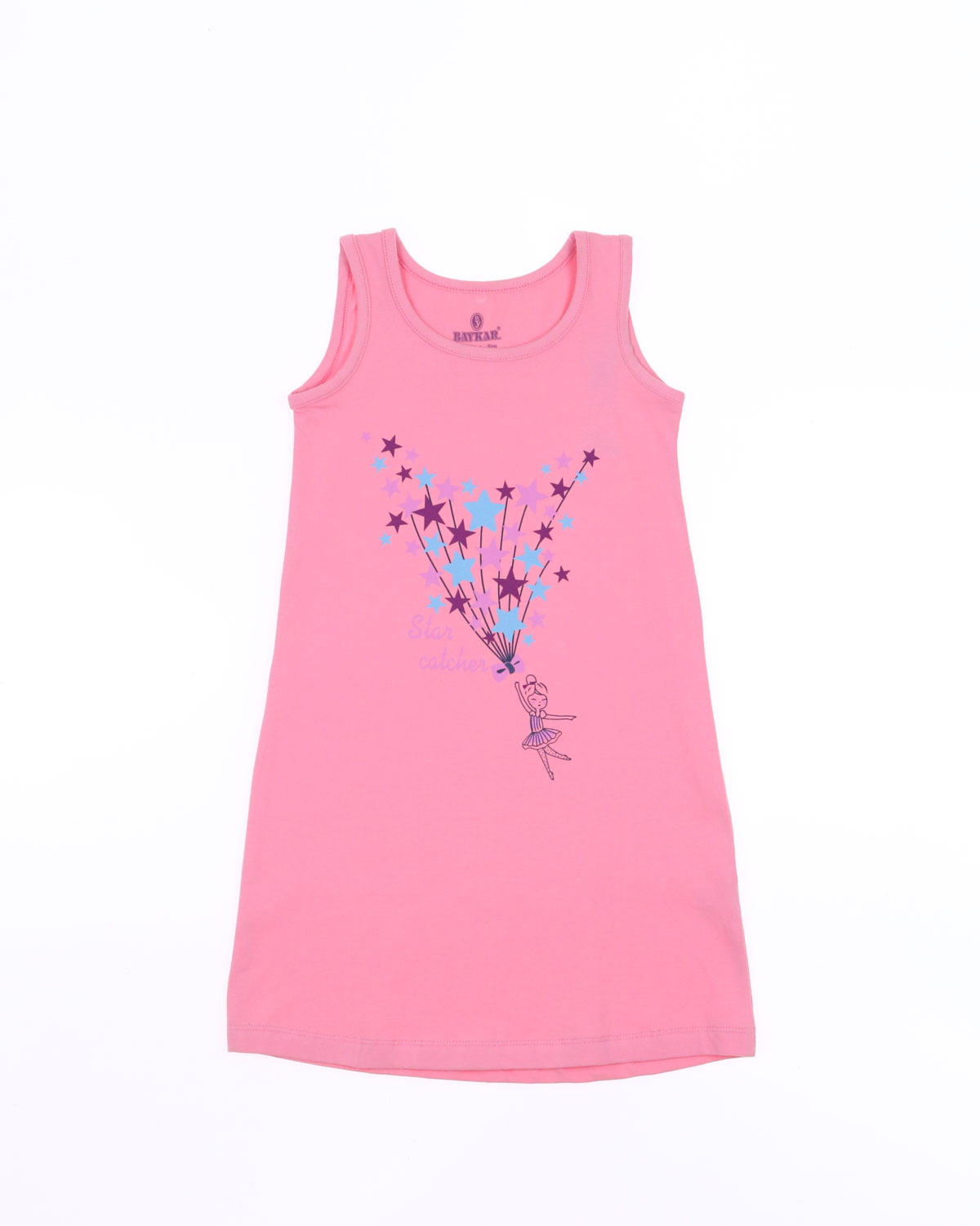 Сорочка для девочки классического фасона от  Baykar  – это комфортная модель, в которой нет лишних деталей. Однотонную сорочку дополняет принт на груди. Одежду для сна сшили из хлопка. Натуральный дышащий и впитывающий влагу материал очень мягкий и легкий. Чтобы ткань быстро не изнашивалась, в смесь добавили 5 % эластана.