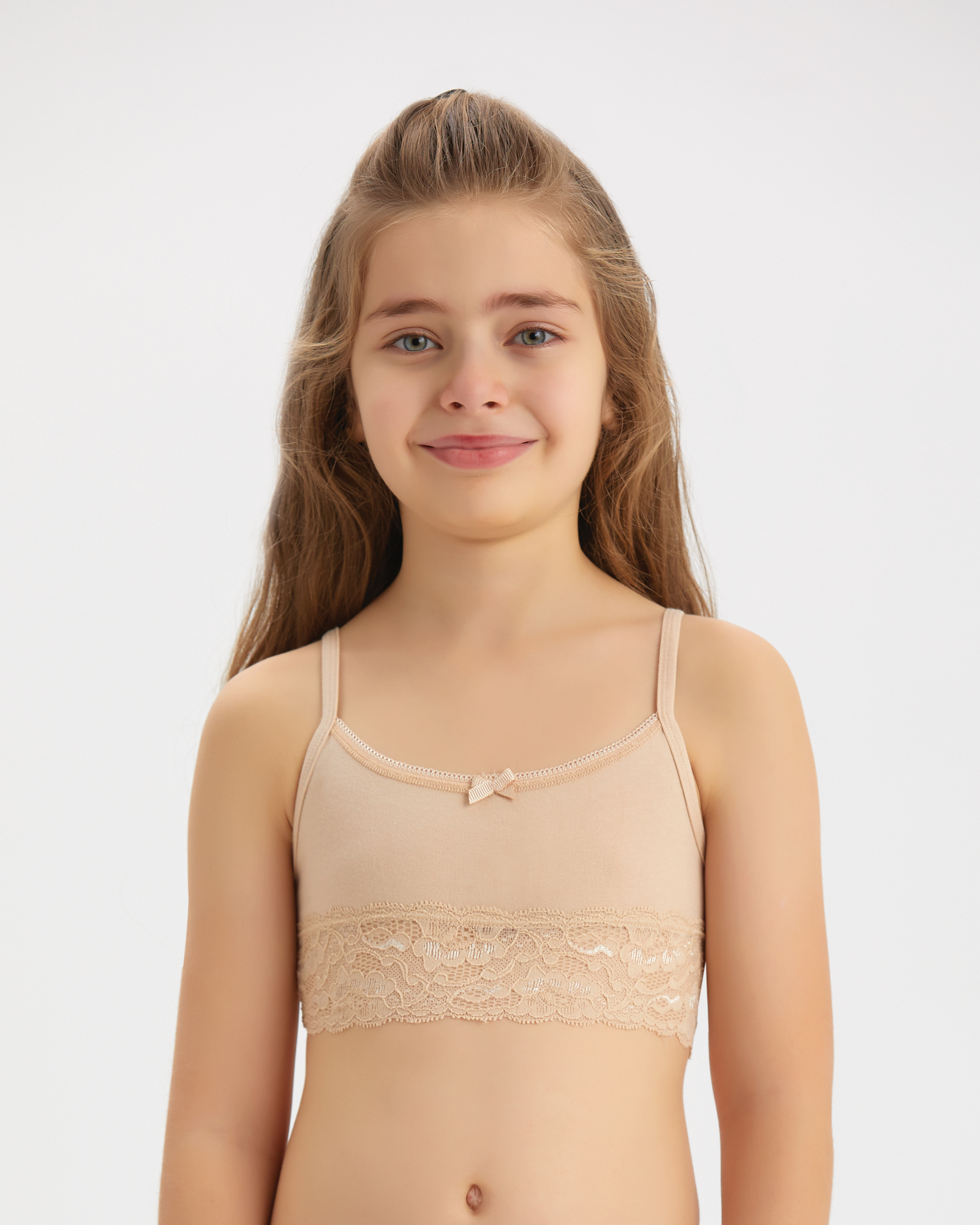 Этот ансамбль для юной леди от турецкой компании BAYKAR представляет собой образец сочетания удобства, функциональности и современного внешнего вида. Вещи созданы из высокосортного трикотажа на основе хлопка, в который вплетена износостойкая эластановая нить. Благодаря этому они неприхотливы в уходе, сохраняют свой цвет и форму даже после многократных стирок. Набор включает в себя топ и трусики, выполненные в бежевой гамме, которые декорированы нежным и эластичным кружевом.
