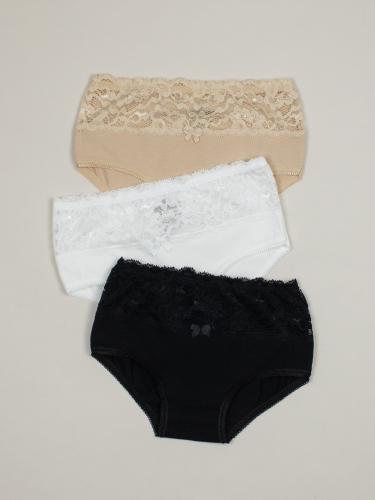 Трусы детские для девочек хлопковые, украшены узорчатым эластичным кружевом.Классическая модель с удобной посадкой, мягкие на ощупь, комфортные и безупречные в носке. Мягкая резинка не давит и не натирает кожу. Дышащая, хлопковая ткань гарантирует комфорт в течение дня.