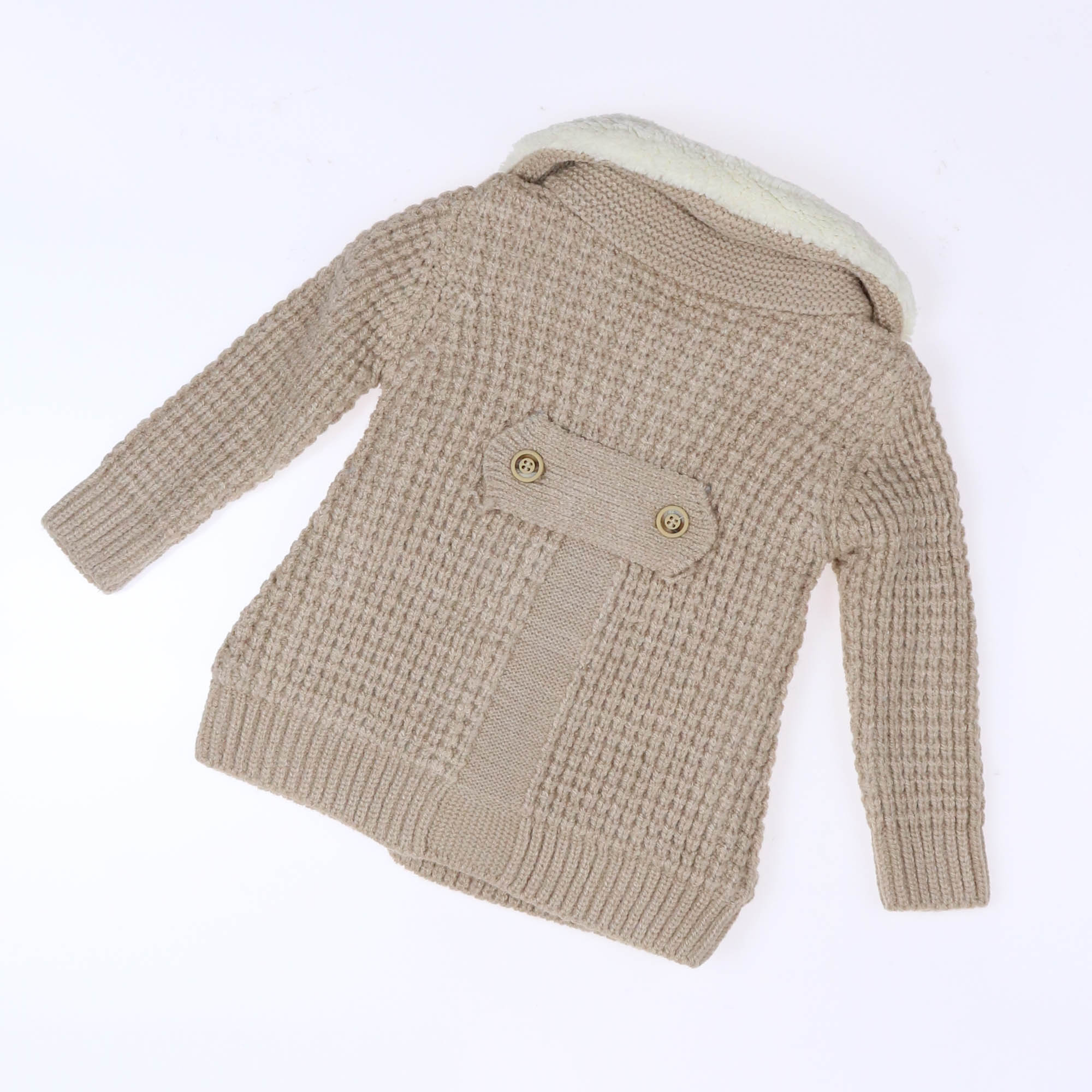 Жакет для новорожденного ребенка - это стильная и нужная вещь в гардеробе самых маленьких. Демисезонная уличная куртка подойдет для прогулок в осенние, весенние дни. Пуговицы на жакете и отложной воротник придадут ребенку еще большей элегантности. Плюшевый, мягкий  подклад будет согревать в прохладные дни. Теплый жакет  отличный вариант для катания малыша в коляске.