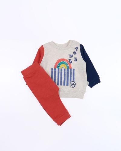 Детский комплект состоит из свитшота и джогерров. На свитшоте и штанишках присутствуют манжеты, которые можно подвернуть. Ткань мягкая, дышащая, 100% хлопок. Можно носить дома, на прогулку, в гости.